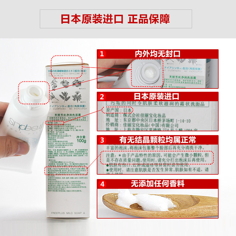 Huashe フリープラスマイルドソープa 洗顔料 日本芙丽芳丝氨基酸净润温和敏感肌男女士洗面奶洁面乳100g包邮
